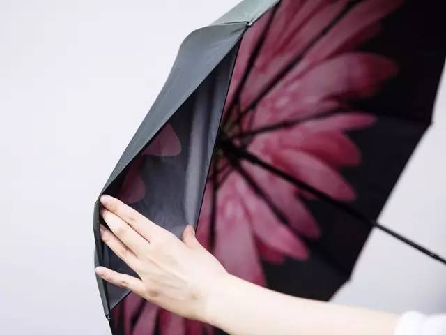 這把“蕉下”專業(yè)防曬傘,黑漆漆的傘面,打開后在傘下有一朵花驚艷盛開。