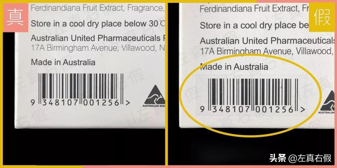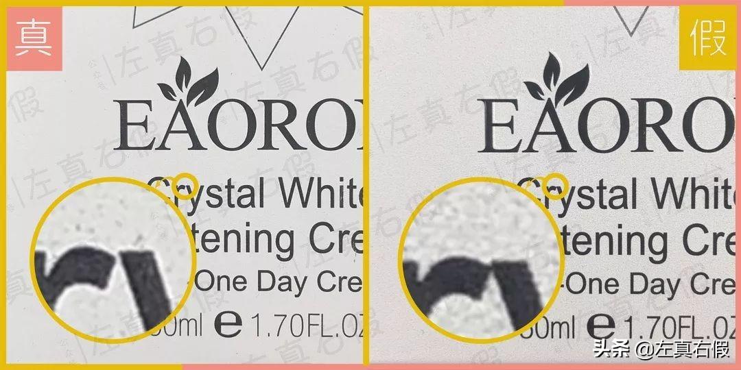 2、看上面的字體,印刷字體很清晰;而假貨字體又細(xì)又淡,放大還會看到毛邊。