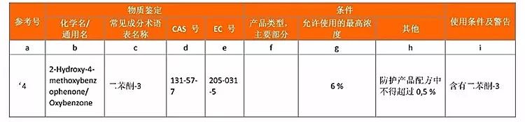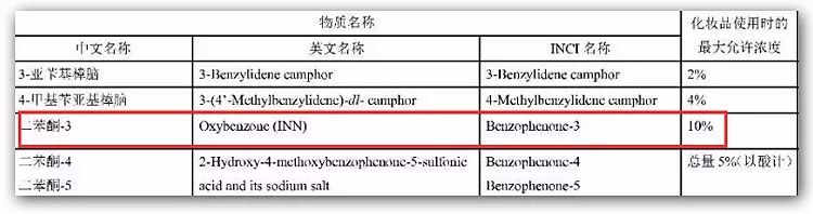 歐盟對二苯酮-3的使用限制為少于6%,規(guī)定含量凡是在0.3%以上的防曬霜都需要標注