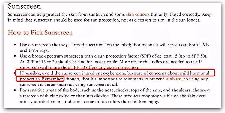 美國兒科學會(AAP)則建議:盡量選擇不含有oxybenzone 的防曬霜