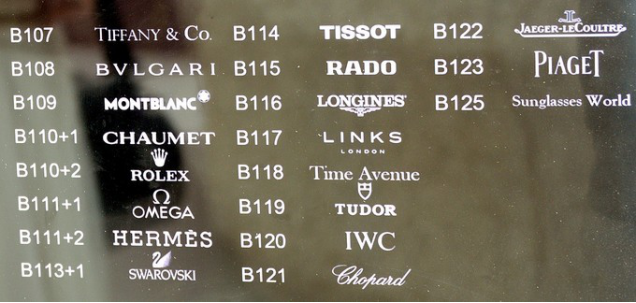 下面是名表和珠寶的牌子和店鋪號(hào):