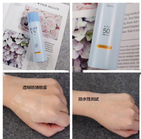 噴出來(lái)質(zhì)地是微乳狀的,但涂開就變透明無(wú)色的了,不會(huì)泛白。膚感是滋潤(rùn)的,也不會(huì)搓泥,防水性當(dāng)然也沒得說。