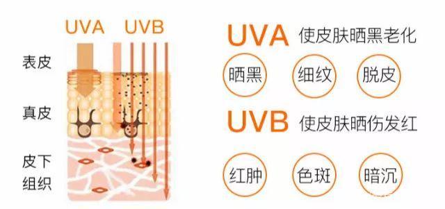 兩者都屬于紫外線,UVA的波長更長,可以穿透皮膚并損害皮膚深層組織!