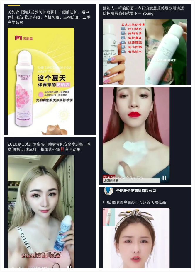 2019年1月,抖音宣布日活用戶已突破2.5億,抖音也成為眾多品牌和產(chǎn)品的營(yíng)銷(xiāo),化妝品的各種評(píng)測(cè)、試用和推廣花樣百出,帶火了一批又一批的“抖音同款”網(wǎng)紅產(chǎn)品,而防曬噴霧就在其中。