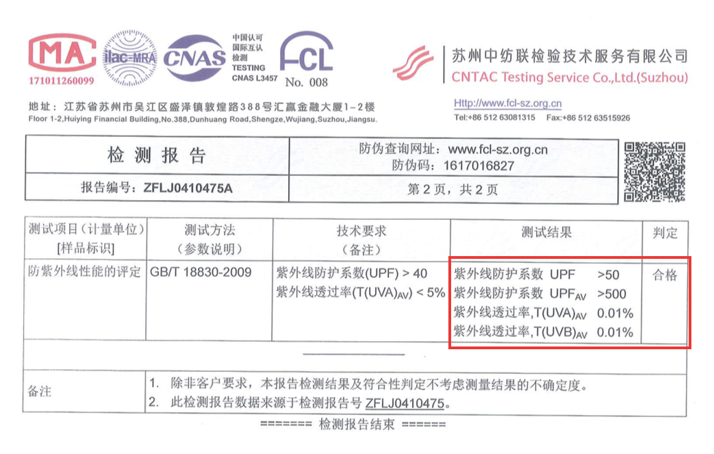 UPF 高達(dá) 50+,UVA 阻隔率高達(dá) 99%。