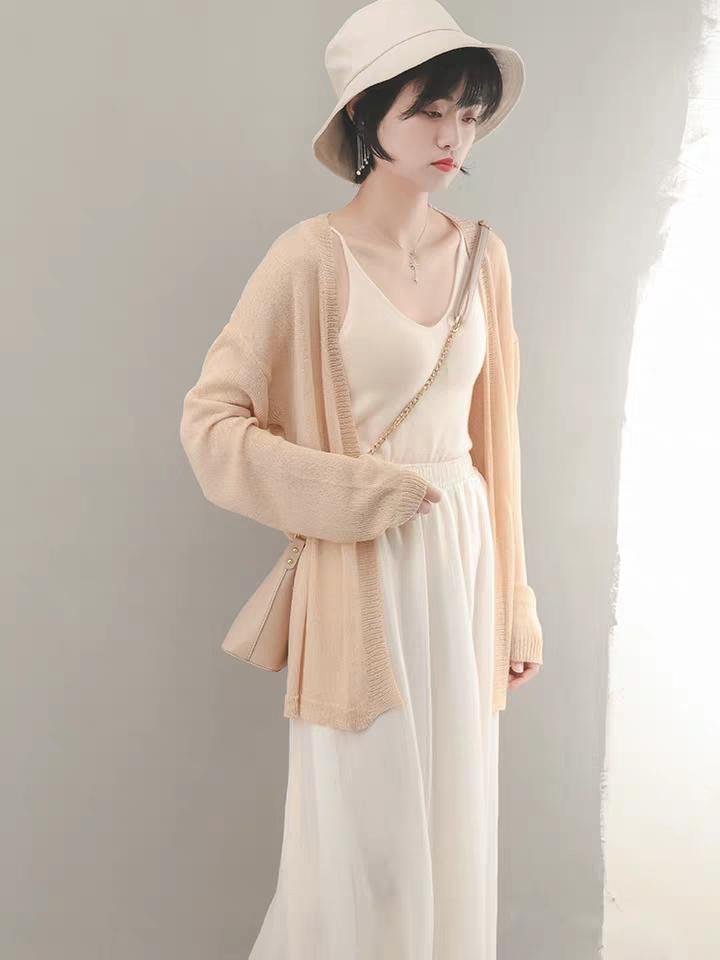 在夏天,針織面料的防曬衫也是受歡迎的,當(dāng)然了,這里說(shuō)的針織防曬衫并不是我們春秋穿的那種厚實(shí)的衣服。雖然是針織面料,但是它輕薄也很透氣,就算是夏天穿起來(lái)也完全不會(huì)悶熱。和雪紡防曬衫一樣,針織面料也是屬于垂感比較好的那一種,穿在身上同樣有一種飄逸的感覺(jué)。