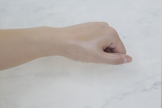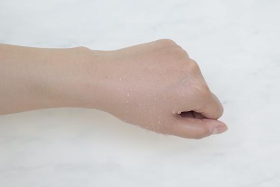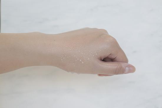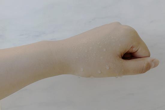 (將產(chǎn)品涂抹在手背上至吸收,再噴上等量的水,凝結(jié)的水珠越多證明防水度越好。)