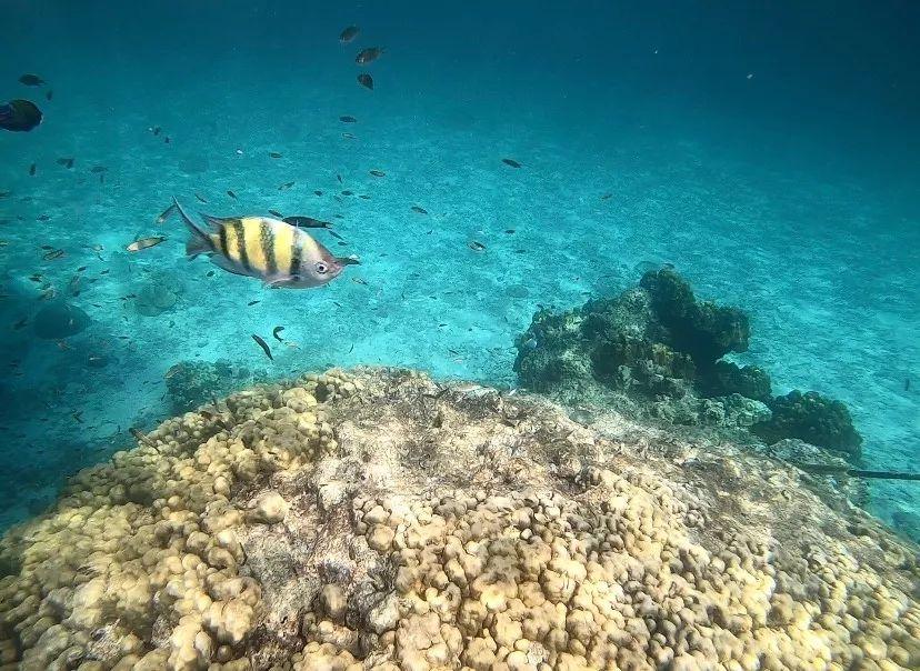 盡情的享受身臨其境的水族館。因?yàn)槲覀兪歉?,沒有經(jīng)驗(yàn)潛下去,拍不到海底更深的美景,我們就把gopro交給教練,他可以潛下去幫你拍。