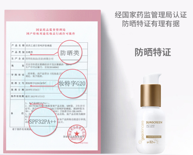 紐西之謎日常日常呵護(hù)防曬霜SPF32 PA++,作為日常防曬是夠的。擁有SGS防曬SPF認(rèn)證+防曬PA認(rèn)證,是一款獲得特殊用途化妝品批準(zhǔn)文號(hào)的防曬——【國(guó)妝特字G20150707】。