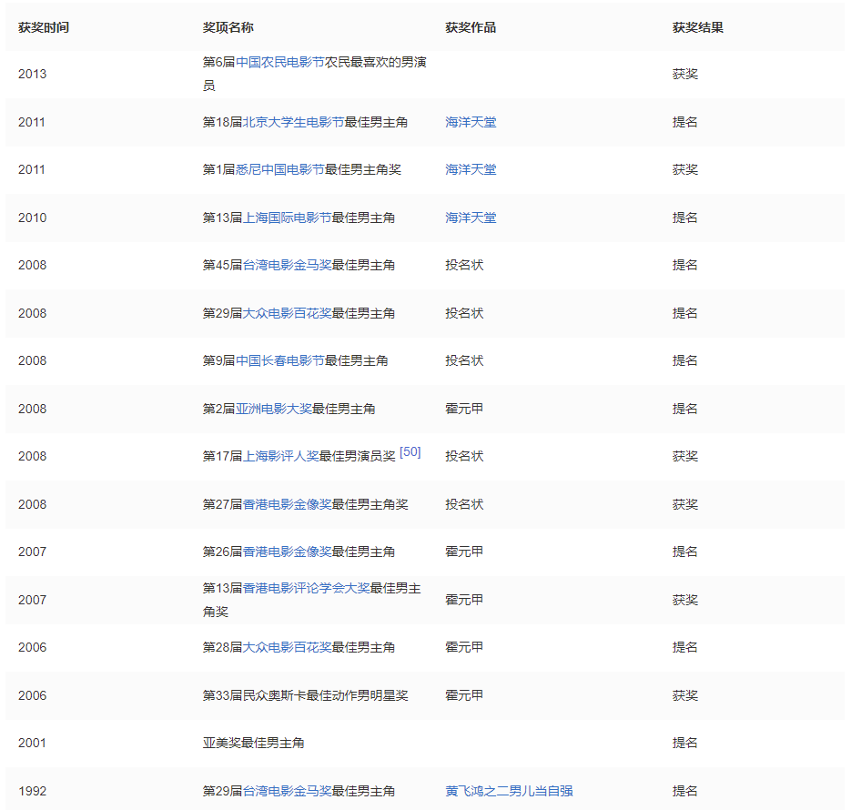 2009年之前,他憑借電影《黃飛鴻》、《霍元甲》、《投名狀》斬獲了香港金像獎(jiǎng)、臺(tái)灣金馬獎(jiǎng)、百花獎(jiǎng)等佳男主角獎(jiǎng),《霍元甲》更是讓他獲得奧斯卡佳動(dòng)作男明星獎(jiǎng)。