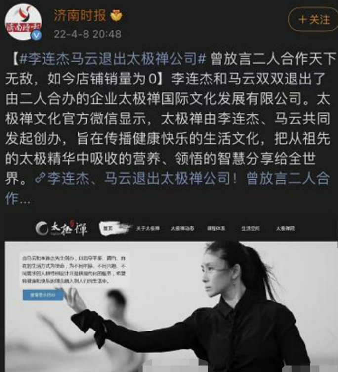 不過,佛并沒有保佑他的公司長(zhǎng)盛不衰,一直以來,跟馬云合作的太極禪店鋪銷量為0,在馬云退股之后,2022年,李連杰也退出了。
