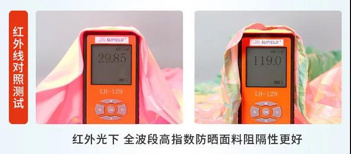 紅外線對(duì)照測(cè)試結(jié)果顯示,素湃全波段面料對(duì)紅外線的阻隔性更加。