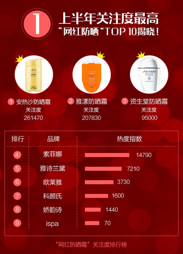 "網(wǎng)紅防曬"top 10揭曉!