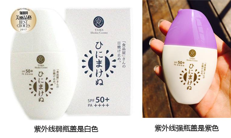 這款防曬之所以能突然紅起來,一是因?yàn)檫@個(gè)牌子是做食品的,而這個(gè)防曬也是用食品級(jí)的原料,成份,所以有很多孕婦都會(huì)選擇這一款防曬。另外一個(gè)原因是它的“高科技”——這款防曬的瓶子會(huì)變色!厲害嘍~~不同的紫外線強(qiáng)度,瓶蓋會(huì)由白色逐漸變成不同程度的紫,顏色越深,表明外界紫外線越強(qiáng)。小小的瓶蓋還能當(dāng)作一個(gè)紫外線測(cè)試儀,時(shí)刻提醒你補(bǔ)充防曬。