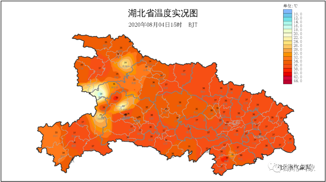 預(yù)計今天白天,除神農(nóng)架外,全省大部地區(qū)高氣溫將升至37℃以上,局部達39℃,請注意防范。
