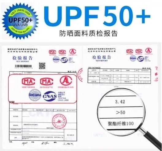 UPF,即紫外線防護(hù)系數(shù),越大越好。UPF40+ 指的是透過紡織織物的紫外線比值未超過 1/40 ;UPF50+ 指比值不超 1/50。
