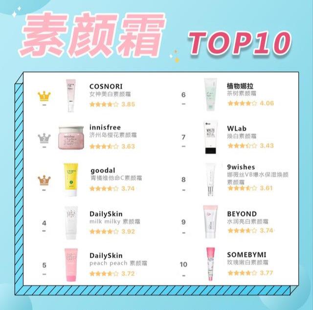3月更新的韓國網(wǎng)友投票選出的“春季愛素顏霜top10”:.