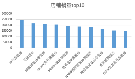 前三的店鋪分比為:樸妍旗艦店,天貓超市和綠蜜蜂海外專營店。平均交易價(jià):57.8、59.3和88元。