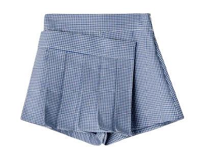 這條裙褲是我今夏穿的次數(shù)多的,來自國內(nèi)設(shè)計(jì)師品牌Shushu/Tong。這個(gè)牌子主打個(gè)性少女風(fēng),不是常見的那種很甜美的少女風(fēng)格,整個(gè)品牌都很有少年的氣息。格紋是它們家標(biāo)志性元素,這條百褶短褲是A字型的,顯腿長,能營造出腿長兩米的感覺。