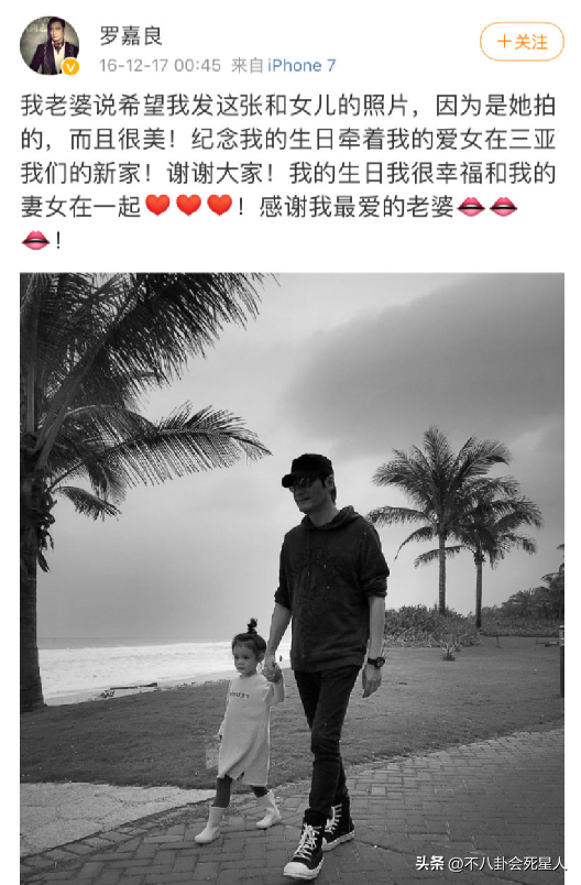 雖然羅嘉良是香港人,但兩人結(jié)婚后選擇居住在了北京。羅嘉良本人就一個十足的“愛妻炫女”戶,結(jié)婚七年的時候,羅嘉良發(fā)當(dāng)著所有人的面發(fā)文稱“感謝我愛的老婆”,話語里滿滿的幸福感,如今兩人結(jié)婚已經(jīng)13年了,感情還是一如既往的好。
