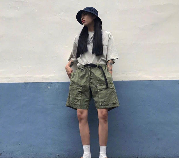 ?上衣掖在褲子里,這也是夏季很好的穿搭風(fēng)格,這樣的穿搭能夠很顯瘦,很顯高。如果你身高不夠高,這樣的一套搭配下來會無形中拉高你的腰線,讓你看起來更加的高挑。圖片中女子選的是灰色的t恤衫,搭配草綠色的闊腿短褲,上衣掖在褲子里,這樣會給人一種上短下長的感覺,輕易的拉高眼線,做高挑的女子OK。