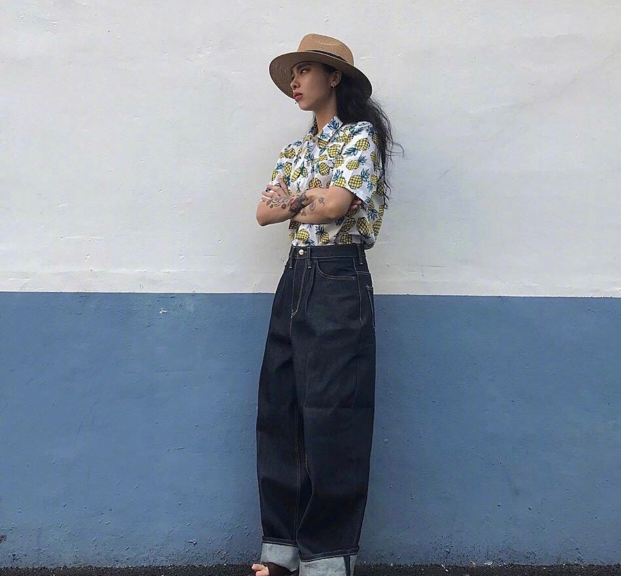 ?小碎花兒也是可以的,小碎花型的上衣,上面有點點菠蘿圖案,菠蘿圖案很適合夏天,很清爽很涼快。模特搭配的是長款的闊腿牛仔褲,極為寬松,走起路來有一種帶風(fēng)的感覺,很清爽很舒適,即使是微胖界的女生也可以輕松駕馭,遮住你的大象腿不成問題。夏季出門的時候,隨意的戴一個小草帽,防曬的同時還能凹造型,隨便往那里一站,拍出來就是一道亮麗的風(fēng)景線。