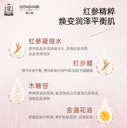一根紅參濃縮成一滴精華油、一滴滴用心制成的紅參蒸汽的凝縮水、紅參熬制的紅參濃縮液,三種標志性紅參原料,融入前沿護膚科技與濃郁馨香,成就了彤人秘內在美與外在美的統(tǒng)一。