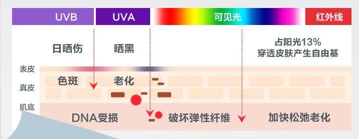 為什么防曬這么重要呢?我們都知道,雖然曬太陽雖然舒服又補(bǔ)鈣,但它所產(chǎn)生的紫外線卻是皮膚老化的“元兇”,它不僅會破壞皮膚的彈性纖維,加快松弛老化,讓人被曬黑、曬傷,產(chǎn)生色斑,而且完全不會隨著四季變換而減退,在光照充足的夏季更是達(dá)到峰值。