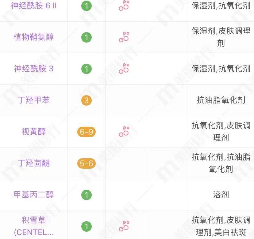除了核心成分proVTA之外,還含有視黃醇這一個成分。視黃醇作為抗老一大成分,緊致淡紋的果是杠杠的,但是會有肌膚不耐受。所以搭配中草藥成分,像是黃芪、積雪草、人參等提取,其中積雪草可以鎮(zhèn)靜修復,提高皮膚耐受性,敏感肌也能放心用。