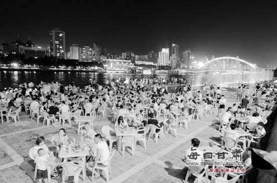 許多市民晚上在黃河邊納涼。本報(bào)記者裴強(qiáng)攝