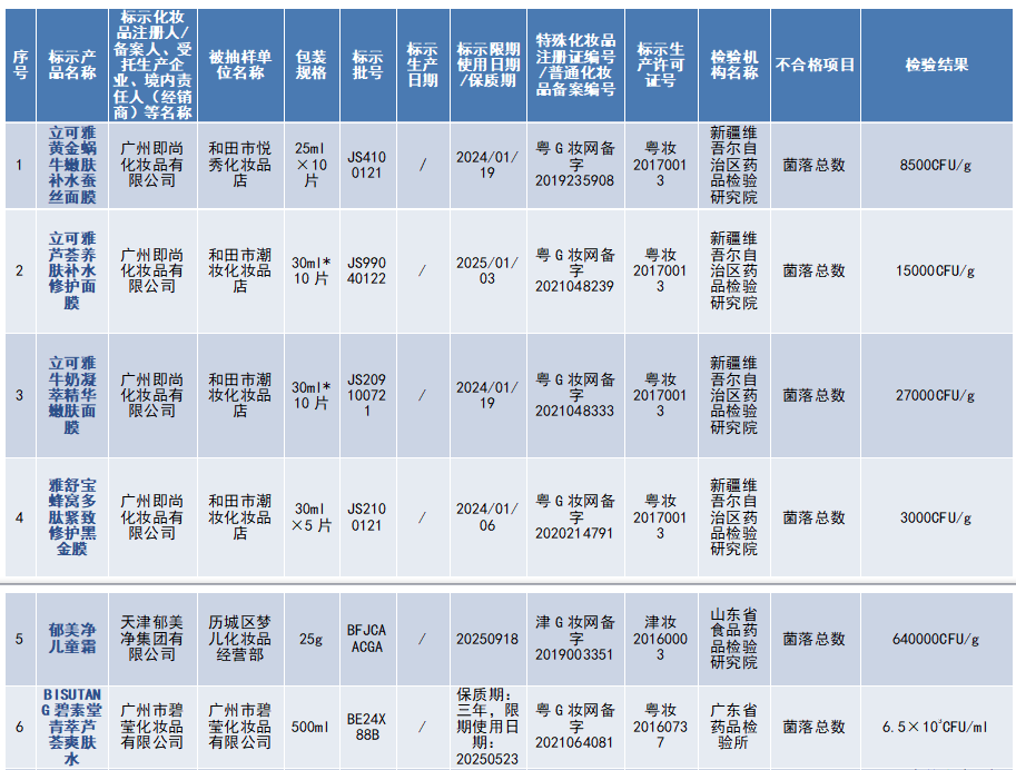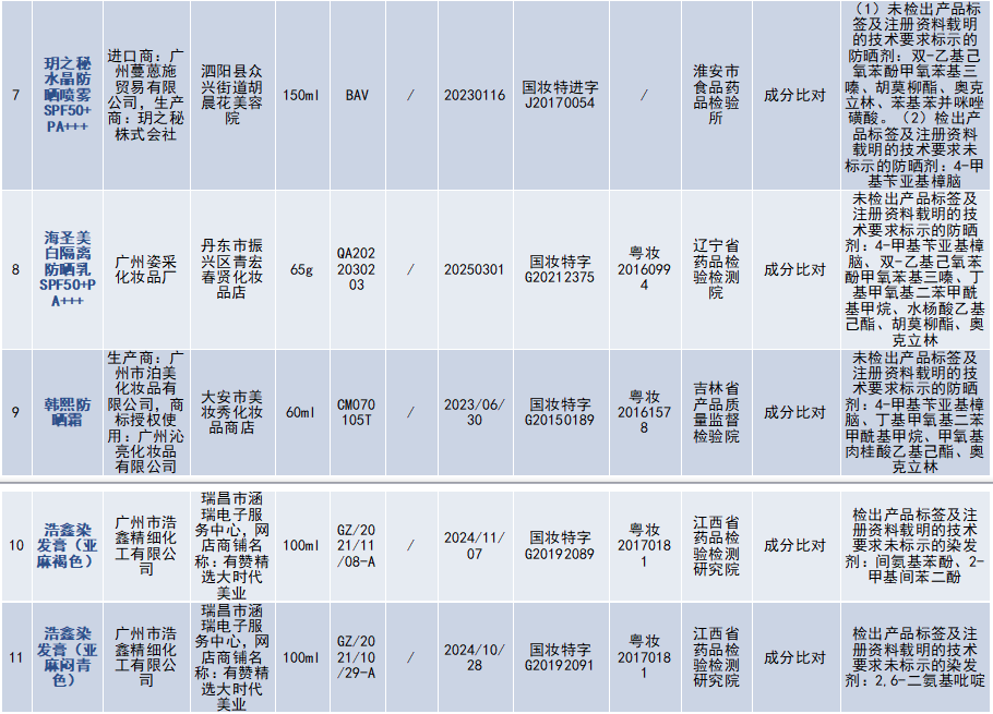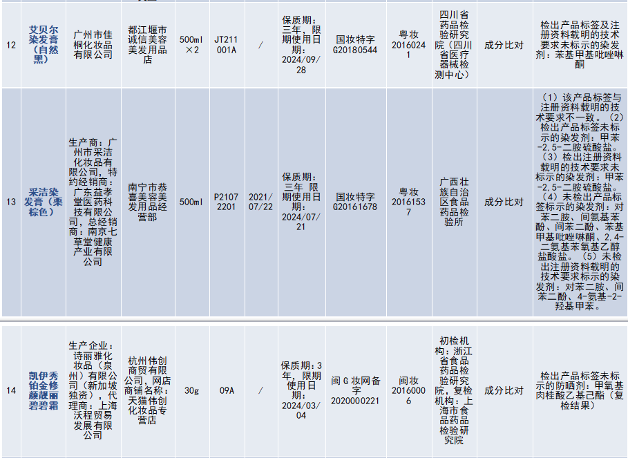 23批次不符合規(guī)定化妝品信息↓