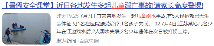 夏季,特別是暑假,是孩子意外事故的高發(fā)期,而其中常見的就是溺水。