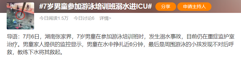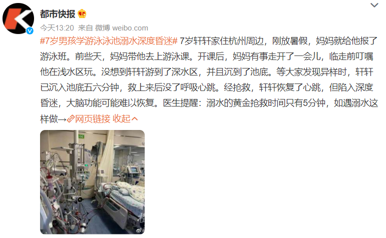 前一陣,湖南張家界,一7歲男孩在游泳培訓班上課的時候溺水,被送進了ICU。