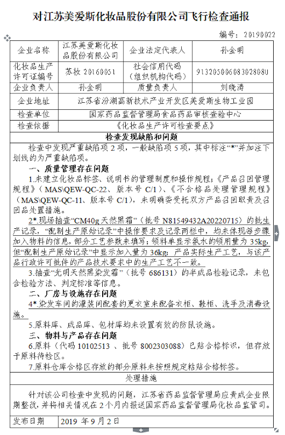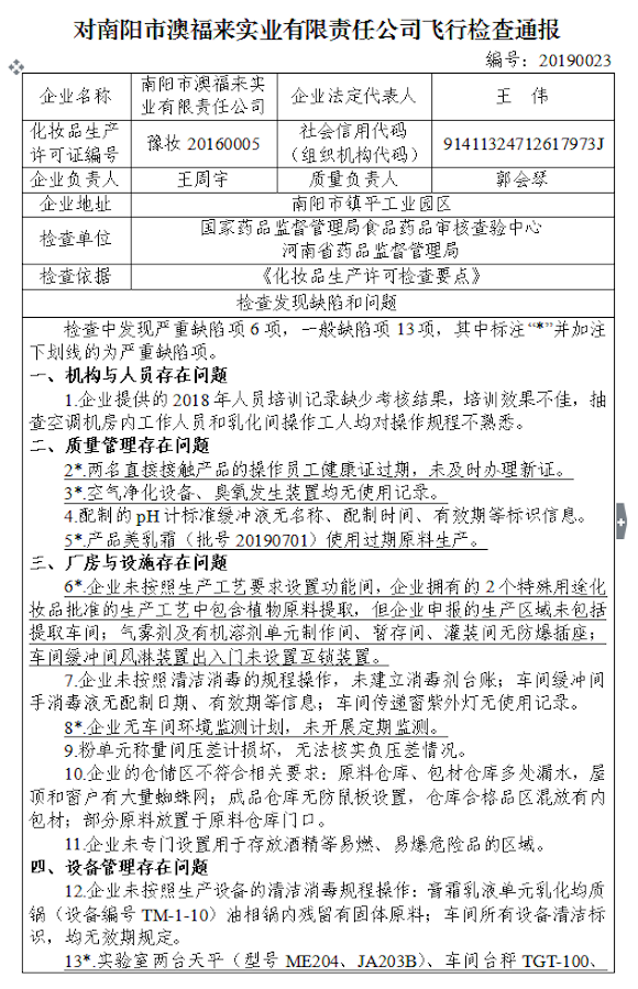 該公司生產(chǎn)的“一梳焗油膏”(批號(hào)20180101)成品灌裝量檢驗(yàn)不規(guī)范。同時(shí),其生產(chǎn)的美乳霜(批號(hào)20190701)存在使用過期原料生產(chǎn)等質(zhì)量管理問題。