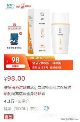 產(chǎn)品功:這款防曬霜中含有德國進(jìn)口的納米級別的超微粒二氧化鈦原料,可以有的抗輻射,而且質(zhì)地更為細(xì)膩清爽,不會讓你感覺到油膩哦,也不會堵塞毛孔。