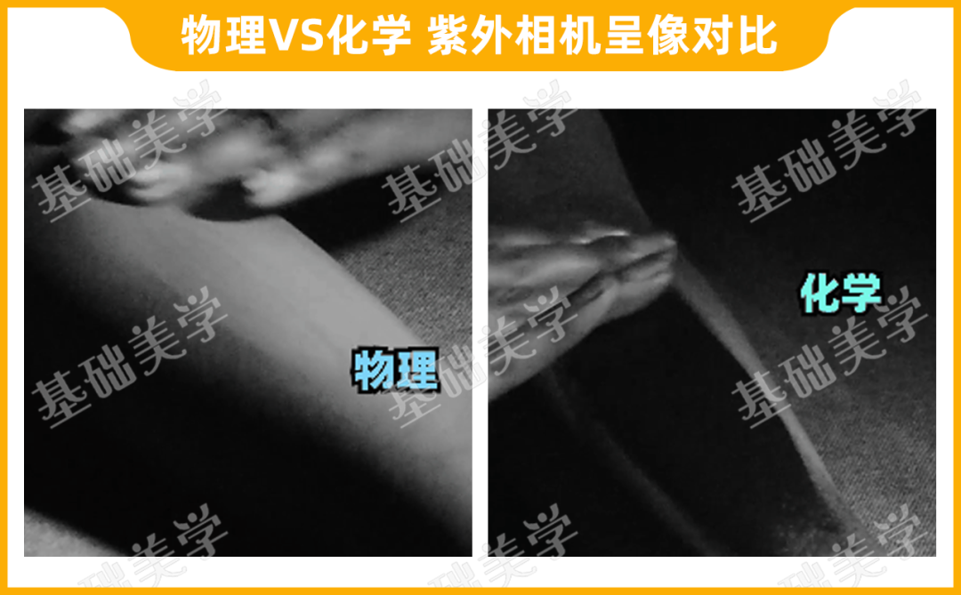 2.防曬原理物理防曬劑通過反射或散射紫外線來防曬,在紫外相機的呈現(xiàn)是灰色。如果不被蹭掉的話,物理防曬霜是可以持續(xù)防曬的。