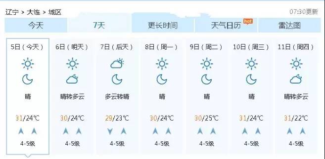 這溫度已經(jīng)是2000年以來!高!溫!16年來,遼寧第一次這么熱!熱!熱!看看大連下一周的天氣預(yù)報(bào),也都是大太陽加上30幾度的天氣