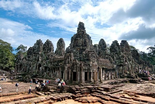 大吳哥城是真臘王國吳哥王朝的國都,于12世紀后期由高棉王國國王Jayavarman擴建而成。城內有巴戎廟(Bayon,又稱拜云寺)、寬闊的中央大道、宏偉的斗象場。