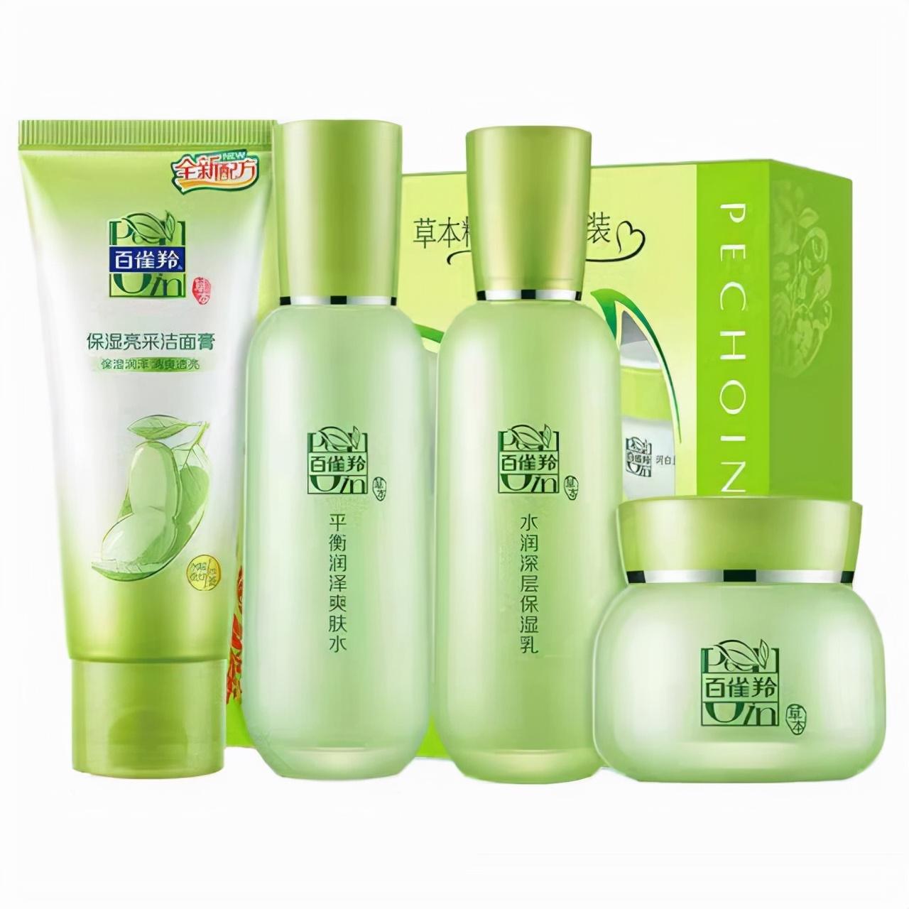 百雀羚,同樣誕生于上海,有90年歷史。這套草本精萃,實在是良心之選,一百多塊錢四件,潔面+水+乳液+面霜。