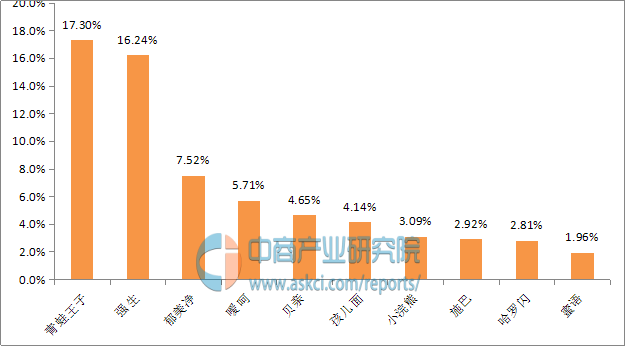 中商產(chǎn)業(yè)研究院發(fā)布的《2017-2022年中國兒童洗浴行業(yè)市場調(diào)查及投資前景研究報告》指出,2015年,我國兒童洗浴行業(yè)市場份額排名前十品牌分別為:青蛙王子、強生、郁美凈、噯呵、貝親、孩兒面、小浣熊、施巴、哈羅閃和蜜語。從品牌監(jiān)測情況來看,青蛙王子、強生和郁美凈為熱銷的三大品牌,兒童洗浴市場前十品牌市場占有率達66%左右,市場集中度較高。