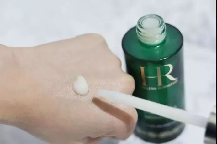 赫蓮娜綠寶瓶精華露是淡黃接近白色的液體狀,但是又有點粘稠,不是很稀薄的那種,延展性不錯,好推開,不會油膩,潤潤的很容易被肌膚吸收,吸收后皮膚很舒服,所以就算是油皮使用起來也無壓力。
