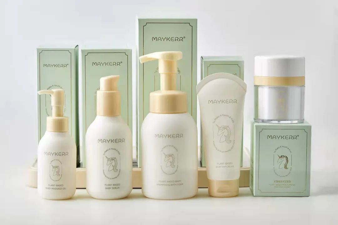2022年1月上線的MAYKERR聚焦高端嬰童洗護市場,品牌的三位創(chuàng)始人分別來自投資、制造和營銷界,致力于填補國內高品質嬰童洗護市場空白。目前品牌已推出沐浴泡沫、保濕面霜、護臀霜、撫觸油等產品,以植萃為主打,以起到強化皮膚屏障的果。