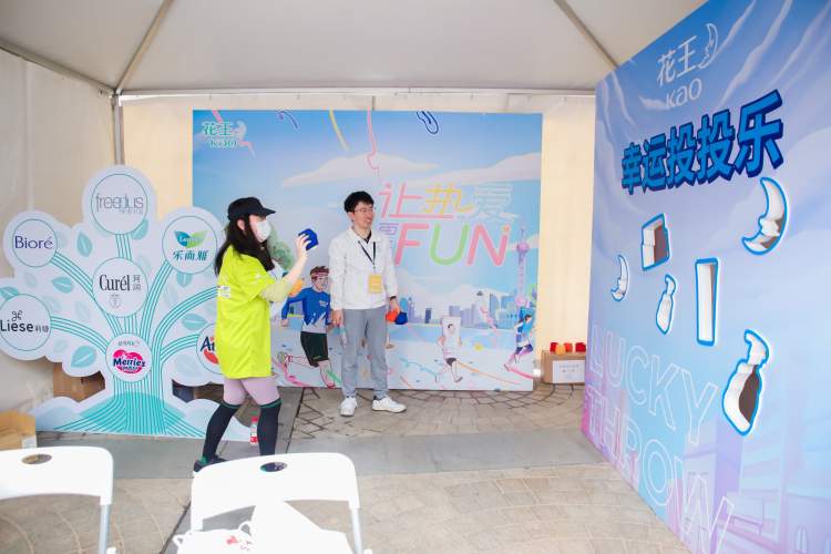 作為本屆賽事的贊助商,花王為現(xiàn)場參賽選手提供了防曬霜等生活用品,同時在現(xiàn)場設置了專門的互動區(qū)域,將品牌系列產(chǎn)品與各類小游戲相結合,提高參賽選手的活動體驗。選手們玩得開心,還能贏得品牌方精心準備的U盤、小樣套裝等禮品。