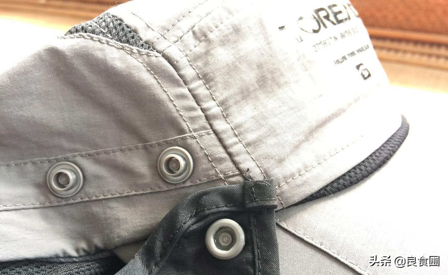 細(xì)節(jié)方面這款帽子做的也是很充分到位的。首先帽子主體和遮擋網(wǎng)布之間所有的連接摁扣都是PVC材質(zhì)的塑料摁扣,避免了金屬摁扣接觸皮膚時(shí)的不舒服;帽子主體在頭的兩側(cè)和正前方采用了拼接網(wǎng)紗大大增強(qiáng)了帽子的透氣性能;材質(zhì)方面,帽子主體面料采用經(jīng)過吸濕速干整理的錦綸面料,吸濕透氣、柔軟輕便,顏色方面有三個(gè)顏色,除了現(xiàn)在評測的這款深灰色還有卡其和鐵藍(lán)灰另外兩個(gè)顏色;均碼的尺碼帽圍58厘米,帽后可調(diào)節(jié)尺寸,松緊度可以根據(jù)自己需求調(diào)整。