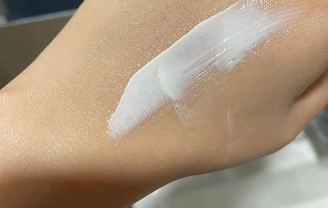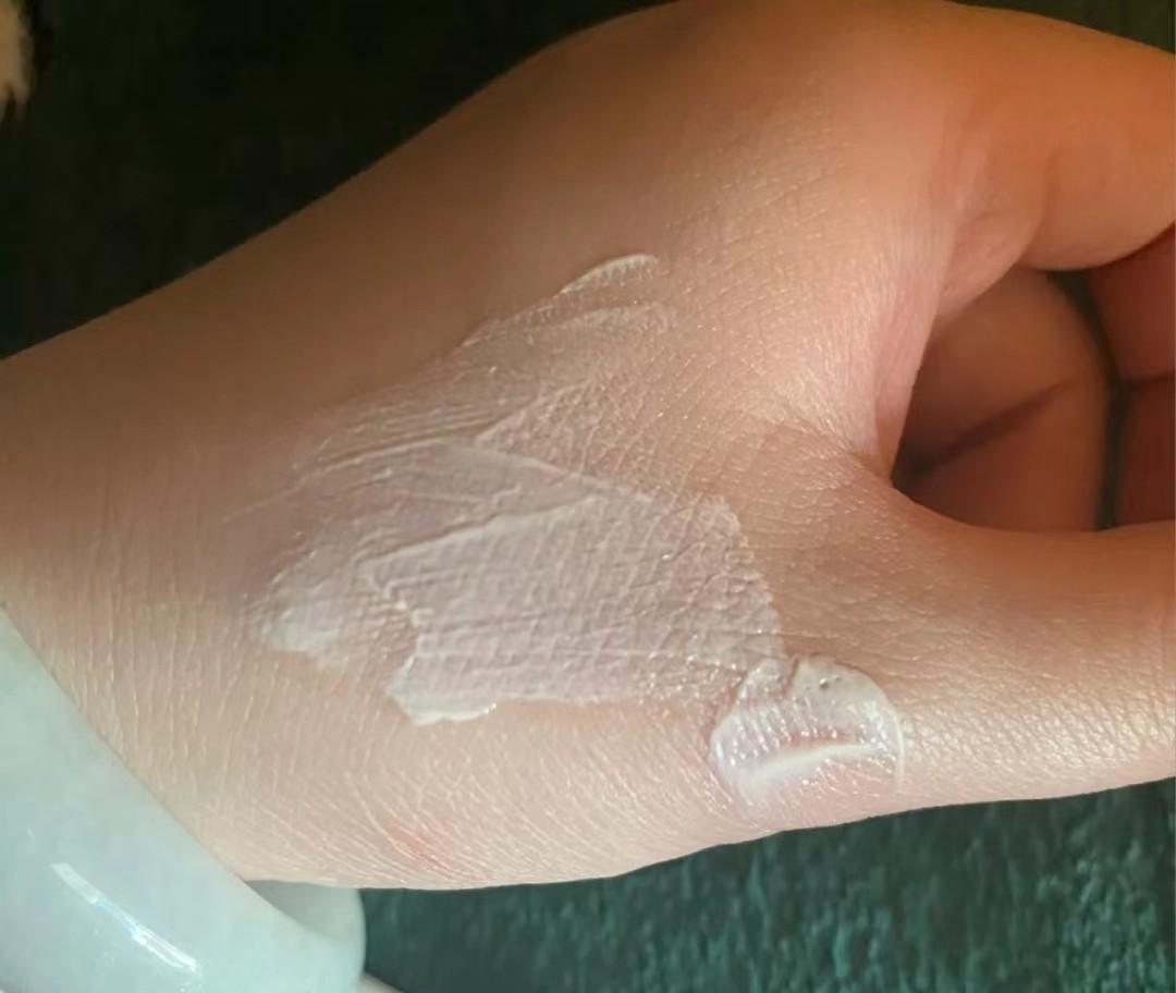 防曬霜偏厚乳液的質(zhì)地,上臉幾乎沒(méi)有流動(dòng)性,拍開(kāi)后能夠快速成膜,但膚感又不會(huì)特別油膩。