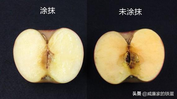 另一個實驗是:將蘋果對半切開,一半涂上小黃人防曬,另一半什么也不涂抹。在太陽下靜置一段時間后可以的看出:“不涂防曬老的快”