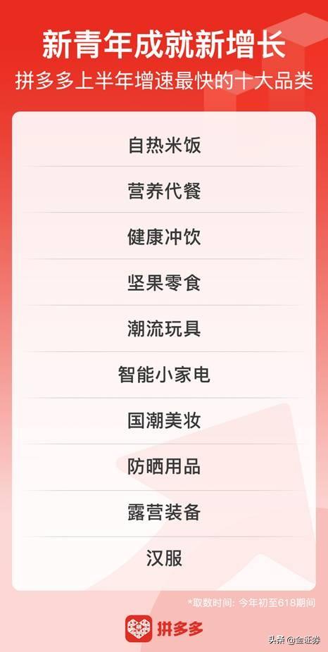拼多多發(fā)布今年初至618期間增長快的十大消費(fèi)品類,上半年拼單量增幅位列前三的快消品類均與“吃”相關(guān)。