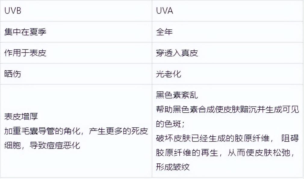 UVA和UVB的比較