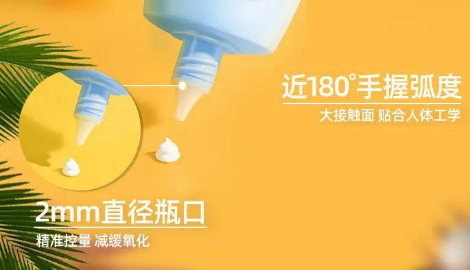 防曬霜的瓶口,有一個(gè)2mm錐形的小口,每次擠壓時(shí)能夠很好的控制住用量。