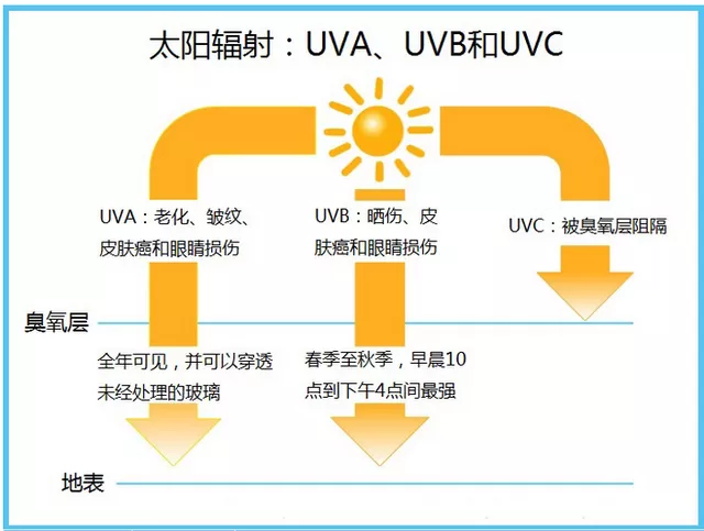 UVA屬于長(zhǎng)波,直接作用皮膚深層,會(huì)引起皮膚黑化。而UVB屬于中波,作用于皮膚表層,使得皮膚發(fā)紅發(fā)黑。